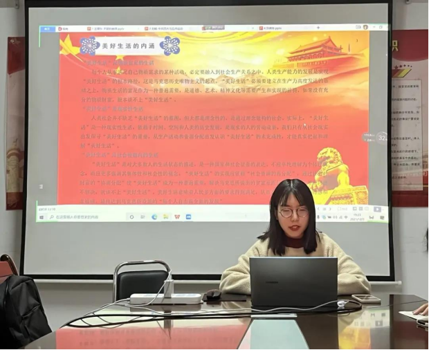 本次讲座由2021级马克思主义理论专业冯圣洁同学主讲。冯圣洁同学主要围绕四个方面进行了论述。首先,冯圣洁同学从“美好生活”是物质富足的生活、现实性生活、社会性指向的生活三个方面解释了美好生活的内涵。其次,她从人民美好生活的需要是国家进步与发展的重要标识、美好生活的需要彰显了人民群众的历史主体地位、实现美好生活需要是人通向自由而全面发展的重要一步这三个方面介绍了建设美好生活的历史意义。然后,她指出构建美好生活要充分发挥实践在美好生活中的自我建构作用,要在美好生活的实践中抵制消费主义文化的不良影响,还必须紧紧依靠人民来创造美好生活。最后,冯圣洁同学从经济、政治、文化、社会、生态五个方面阐述了加快实现美好生活的路径。