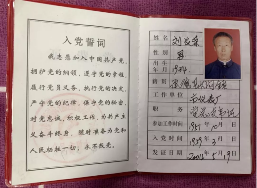 图为刘长荣爷爷的党员证