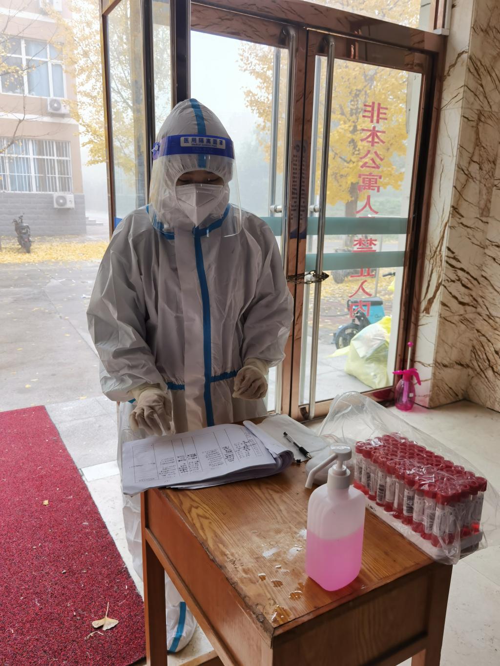 赵立永老师尽职尽责采集核酸信息