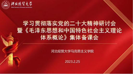 为进一步深入学习贯彻落实党的二十大精神,讲好思政课,2月25日,太阳成tyc122cc集团举办“学习贯彻落实党的二十大精神研讨会暨《毛泽东思想和中国特色社会主义理论体系概论》集体备课会”。