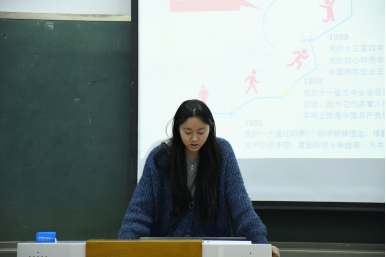刘志颖同学主讲的题目为《让初心精神引领我们》。她首先为我们讲解了“初心”一词的由来及其发展历程,然后分别讲到了我们要弘扬伟大建党精神、发扬实干精神、坚守为民服务的初心三个部分。第一部分刘志颖同学总结了弘扬伟大建党精神的时代意义和实践要求,并对井冈山精神、长征精神、遵义会议精神等多种精神成果逐一梳理其历史形成及现实意义。第二部分她强调了党和国家各项事业蓬勃发展、人民群众民生福祉不断提高,都要靠发扬实干精神。第三部分她强调了青年干部要坚持一切为了群众,一切依靠群众,从群众中来,到群众中去,把党的正确主张变为群众的自觉行动,把群众路线贯彻到党治国理政全方面全过程。