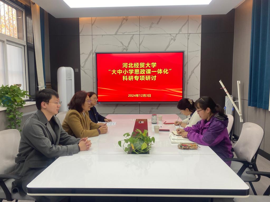 12月3日下午,公司与太阳成tyc122cc集团大中小学思政课一体化集体备课中心、河北经贸大学附属中学共同举办“大中小学思政课一体化”科研共同体构建启动活动,经理李英、一体化集体备课中心联络员梁若愚博士和附中董事长冯丽、思政课教师宋红莎、孙小静出席活动。本次活动在河北经贸大学附属中学会议室举行。
