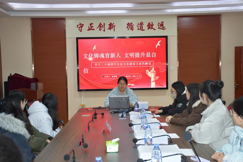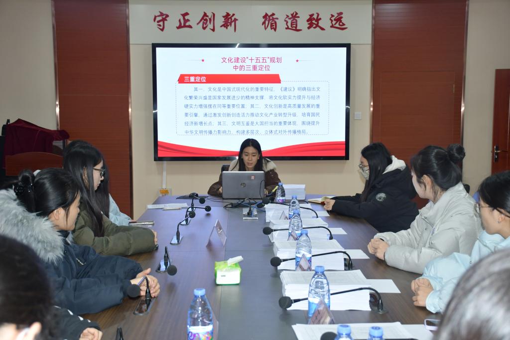 李宇佳同学围绕党的二十届四中全会关于文化建设部署,系统梳理了我国在文化领域取得的重大成就与其深远历史意义;李宗琦同学聚焦文化建设的战略定位,阐释了当前加强文化建设的现实必要性与时代紧迫性;张瑀涵同学结合具体实践,对如何推进新时代中国特色社会主义文化建设提出了自己的思考与建议。