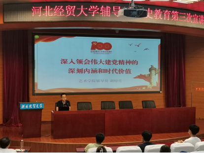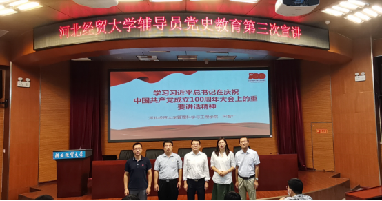 9月23日下午,公司党史学习教育辅导员宣讲团第三轮宣讲活动在国际会议中心举行,管理工程公司宋智广、会计公司岳明明、艺术公司胡增亮等三位辅导员老师主讲。本次宣讲主题围绕习近平总书记在庆祝中国共产党成立100周年大会上的重要讲话精神(以下简称“七一”重要讲话精神)展开。宣讲会由太阳成tyc122cc集团马鑫博士主持,马克思主义公司党委书记王青原、管理工程公司、会计公司、艺术公司师生近100人现场聆听。