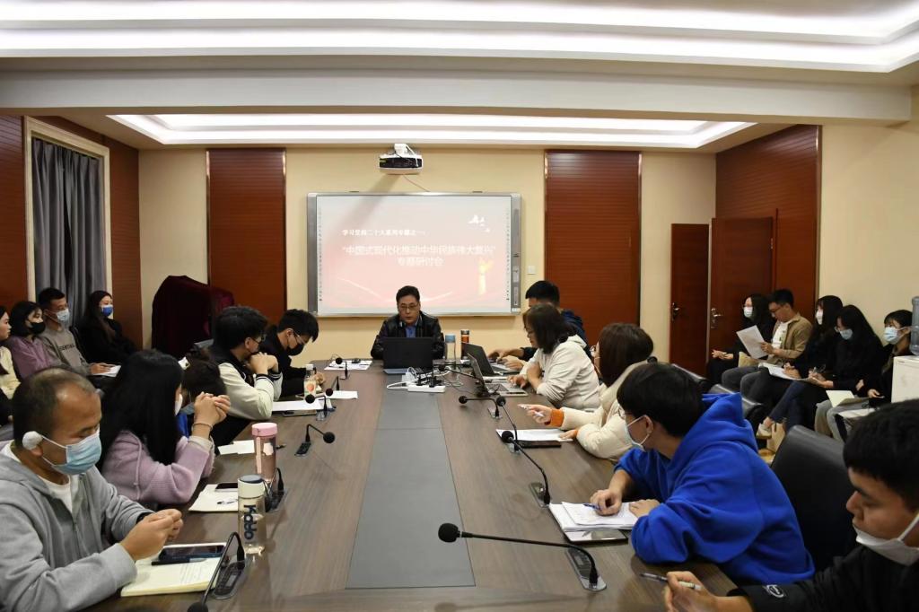 10月25日,原理教研室党支部与研究生支部联合进行以“如何在现代性危机中突出重围并重建人类文明新形态——兼论中国式现代化的五大特征”为主题的党的二十大精神学习活动,原理支部王晓路主讲,与参会师生共同讨论。师生党员表示:中国没有辜负社会主义,社会主义也没有辜负中国,科学社会主义与中华民族伟大复兴相辅相成。中华民族伟大复兴已经呈现出不可逆转之势,但复兴之路任重道远,中国式现代化必须符合人类社会发展的客观规律。