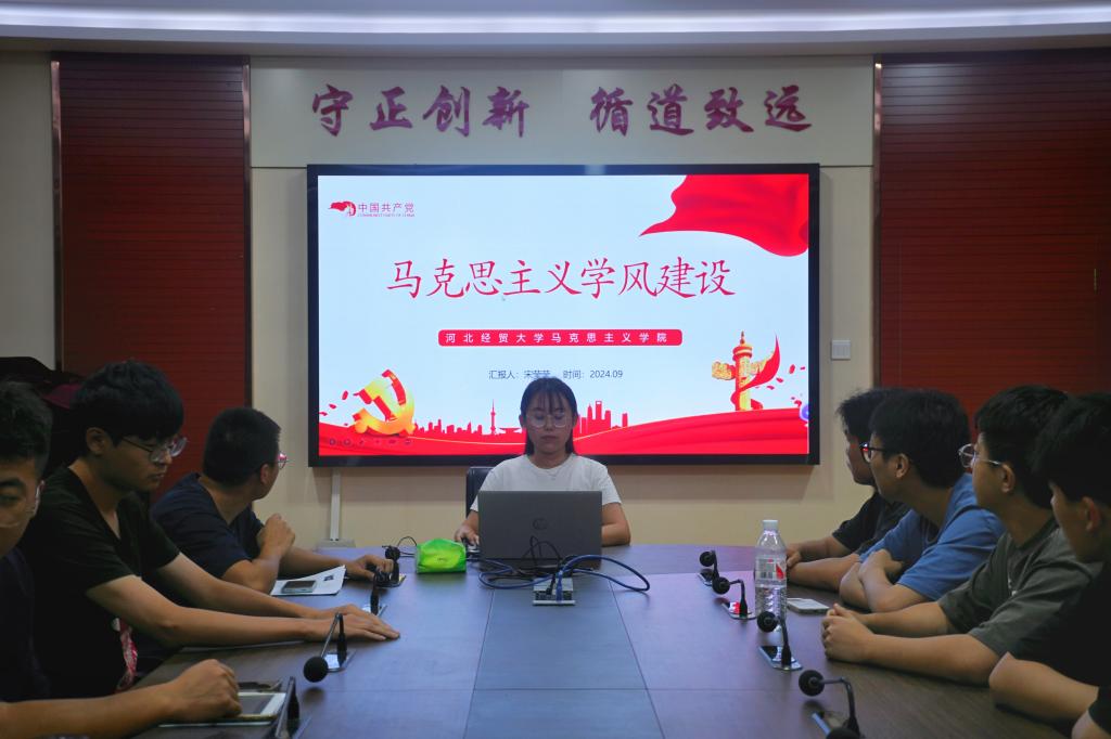 宋莹莹同学以“马克思主义学风建设”为主题进行了深入讲解,从加强马克思主义学风建设的现实价值出发,探讨其深刻的意蕴内涵,并提出了在当代背景下进一步深化学风建设的对策思路。她强调,马克思主义的实践性是我们解决问题的关键,应当积极地将其运用于日常学习生活中。