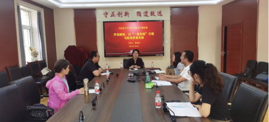 7月6日下午,公司党委书记董佰壹以“学思践悟,以‘一流党建’引领马院高质量发展”为题讲授主题教育专题党课。会议在二办203和线上同时进行,党委副书记马鑫、各党支部书记、员工党员和员工干部参会学习。