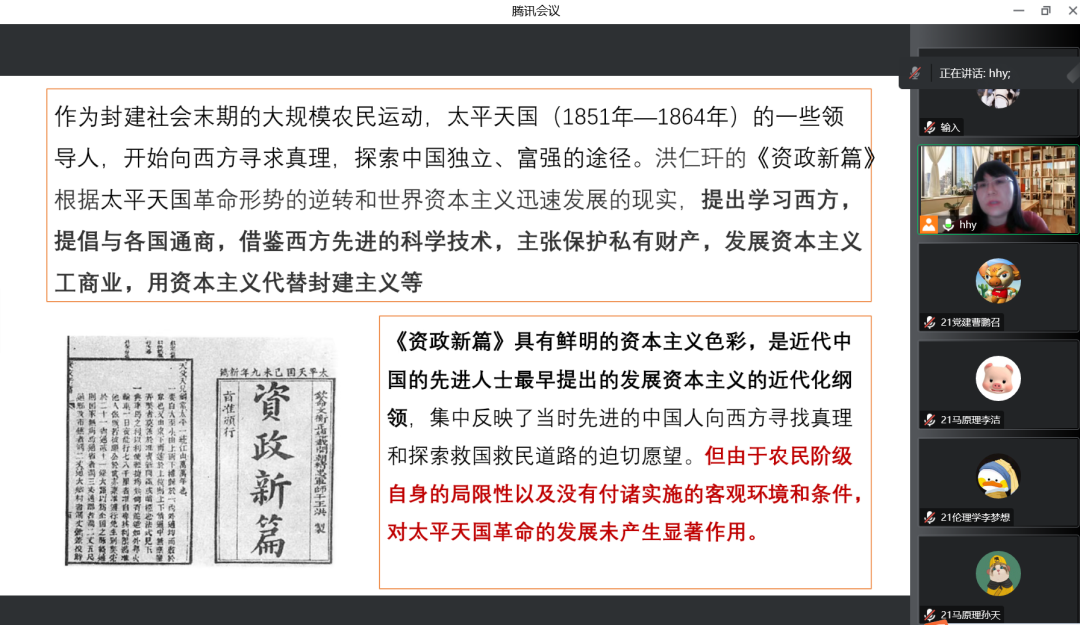 为深入学习宣传贯彻党的二十大精神,系统理解习近平新时代中国特色社会主义思想,12月9日下午,公司开展了以“中国式现代化的探索历程”为主题的宣讲活动。此次宣讲采用线上模式,由基础教研室党支部黄海昀老师主讲,基础教研室党支部党员、研究生党支部党员、积极分子等五十余人参加了此次会议。