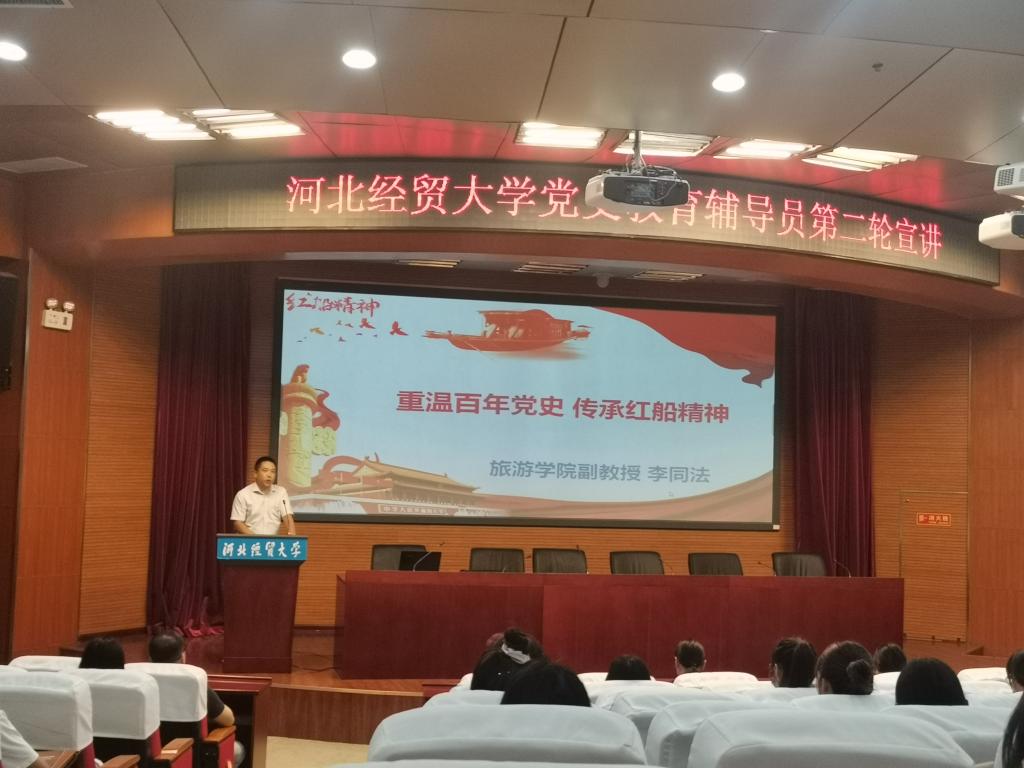 6月17日下午,公司党史学习教育辅导员宣讲团第二轮宣讲活动在国际会议中心举行,旅游公司李同法、财政税务公司黄培、商公司李珊珊等三位辅导员老师主讲。本次宣讲会由太阳成tyc122cc集团马鑫博士主持,马克思主义公司党委书记王青原、旅游公司、财税公司、商公司师生130余人现场聆听。