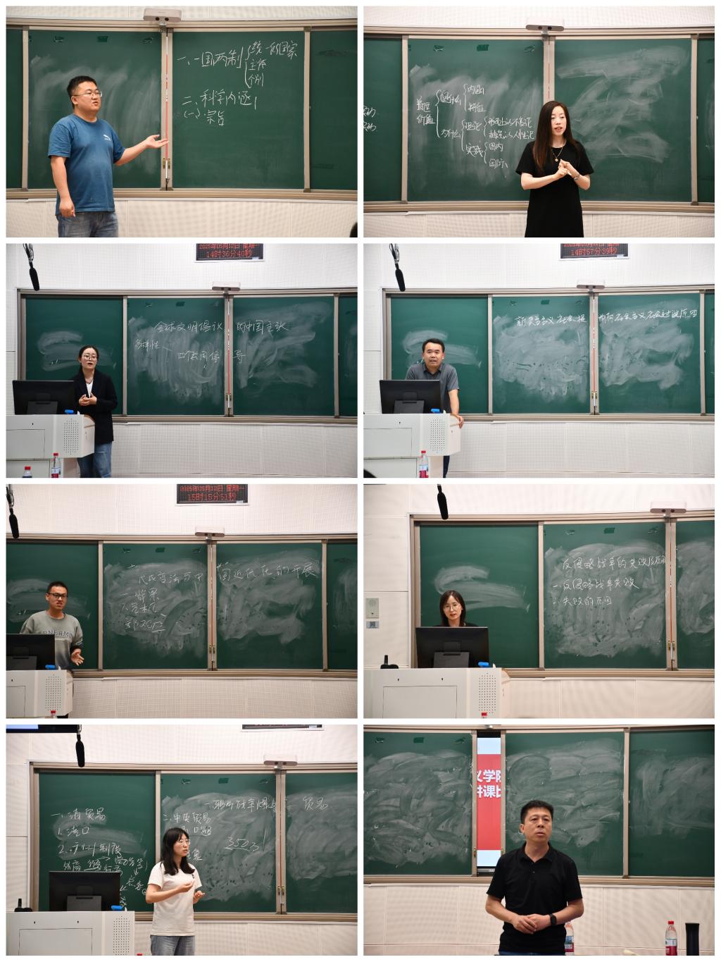 在教学设计展示环节,七位青年教师立足学术前沿,以深厚的理论功底创新教学呈现。蒋志远老师通过历史与现实的时空对话,系统阐释“一国两制”理论的科学内涵及其新时代实践价值;孟宪怡老师运用马克思主义批判方法,深度解构西方“普世价值”的意识形态本质;尼莎老师以全球文明倡议为切入点,构建文明多样性认知框架;王伟光老师结合抗美援朝等重大历史事件,揭示新民主主义社会转型的历史必然性;贾健鹏老师通过戊戌变法案例分析,阐释近代化进程中经济基础与上层建筑的辩证关系;李伟老师立足军事战略视角,总结近代反侵略斗争的经验启示;王永男老师运用全球史观,重新诠释鸦片战争爆发的深层经济逻辑。