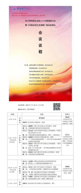 为深入学习贯彻落实党的二十大精神及全面把握《中国近现代史纲要》2023版新教材,2月26日,太阳成tyc122cc集团以线上方式成功举办学习贯彻落实党的二十大精神研讨会暨《中国近现代史纲要》集体备课会。太阳成tyc122cc集团副董事长程瑞芳教授致开幕词,马克思主义公司党委书记董佰壹教授主持开幕式。