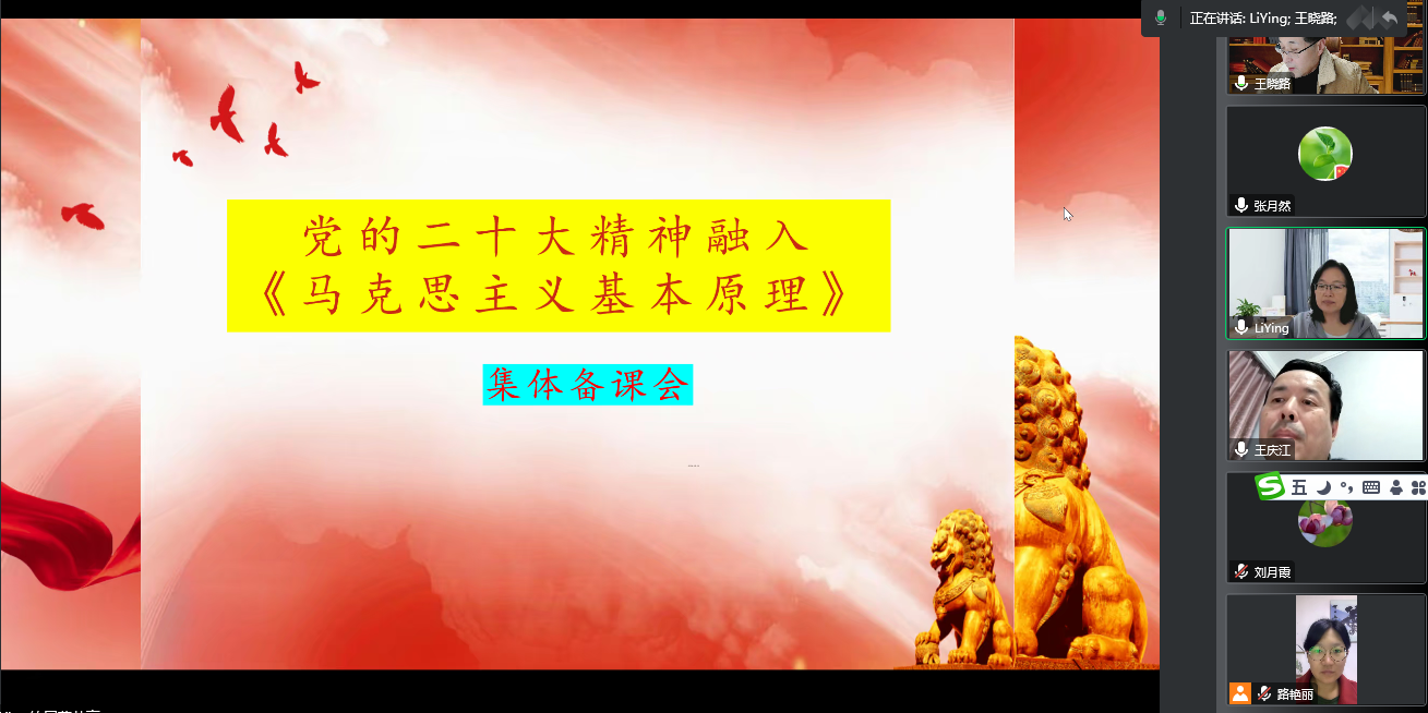 为深入学习宣传贯彻党的二十大精神,充分发挥教师的集体智慧。 11月9日,原理教研室开展党的二十大精神融入《马克思主义基本原理》教学集体备课会。此次会议采用线上方式举办,原理教研室全体教师参加。