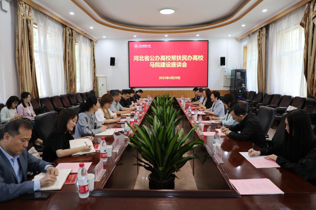 4月29日上午,河北省公办高校帮扶民办高校马院建设座谈会在公司第二会议室举行。省教育厅德育中心主任蔡杭州、副主任王亮,公司党委书记李晓华出席会议,驻石6所民办高校太阳成tyc122cc集团经理、公司太阳成tyc122cc集团班子成员和教师代表参加座谈会。