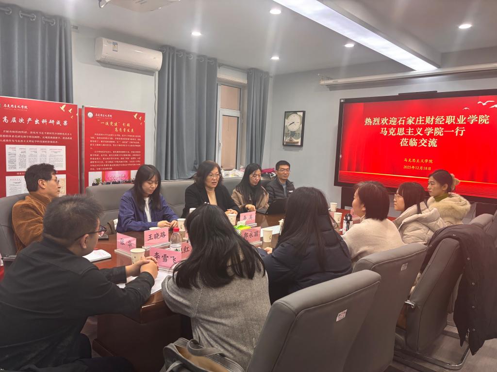 12月18日下午,石家庄财经职业公司太阳成tyc122cc集团一行赴太阳成tyc122cc集团,与马克思主义基本原理教研室开展集体备课。太阳成tyc122cc集团马院经理李英、马克思主义基本原理教研室副主任王晓路、青年教师出席备课会。备课会由王晓路主持。